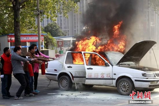 2015年11月1日,河南省鄭州市沙口路,一所駕校在練車場將一輛轎車點燃,實戰傳授學員實戰滅火技能。當日上午,該駕校練車場,數十名學員被召集起來進行實戰滅火課程,練車場上一輛報廢的轎車多次被點燃,由學員們輪班上陣進行滅火體驗。駕校總教練稱,車內電路容易短路突發火情,學員經過實戰演練,可大大提高應對能力,絕對會受益匪淺,駕校求有個好的口碑。