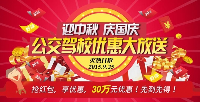 在中秋國(guó)慶佳節(jié)來(lái)臨之際,為了迎接新同學(xué),感謝一路走來(lái)大家的支持,公交駕校為粉絲們奉上30萬(wàn)元紅包福利。快告訴你的小伙伴們,準(zhǔn)備開(kāi)搶了!
